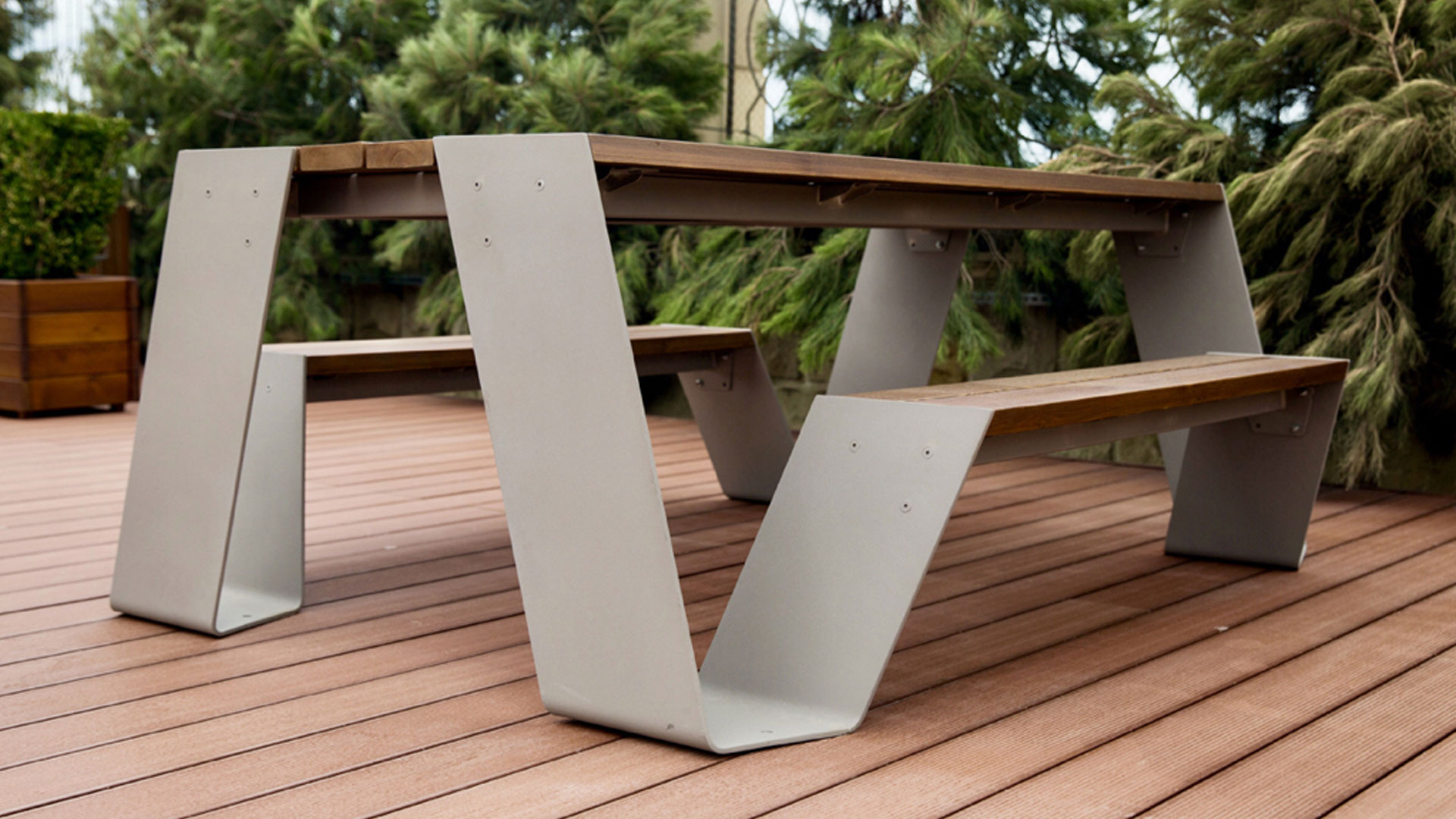 "VIVA" özündə həm skamyaları, həm də masanı birləşdirən xüsusi növ skamyadır. Bu unikal dizayn "Viva"i yaşayış sahələri üçün ideal seçim edir. Hər iki tərəfdə oturma yeri olan bu skamyadan kiçik toplantılar, pikniklər və stolüstü oyunlar üçün istifadə etmək olar.