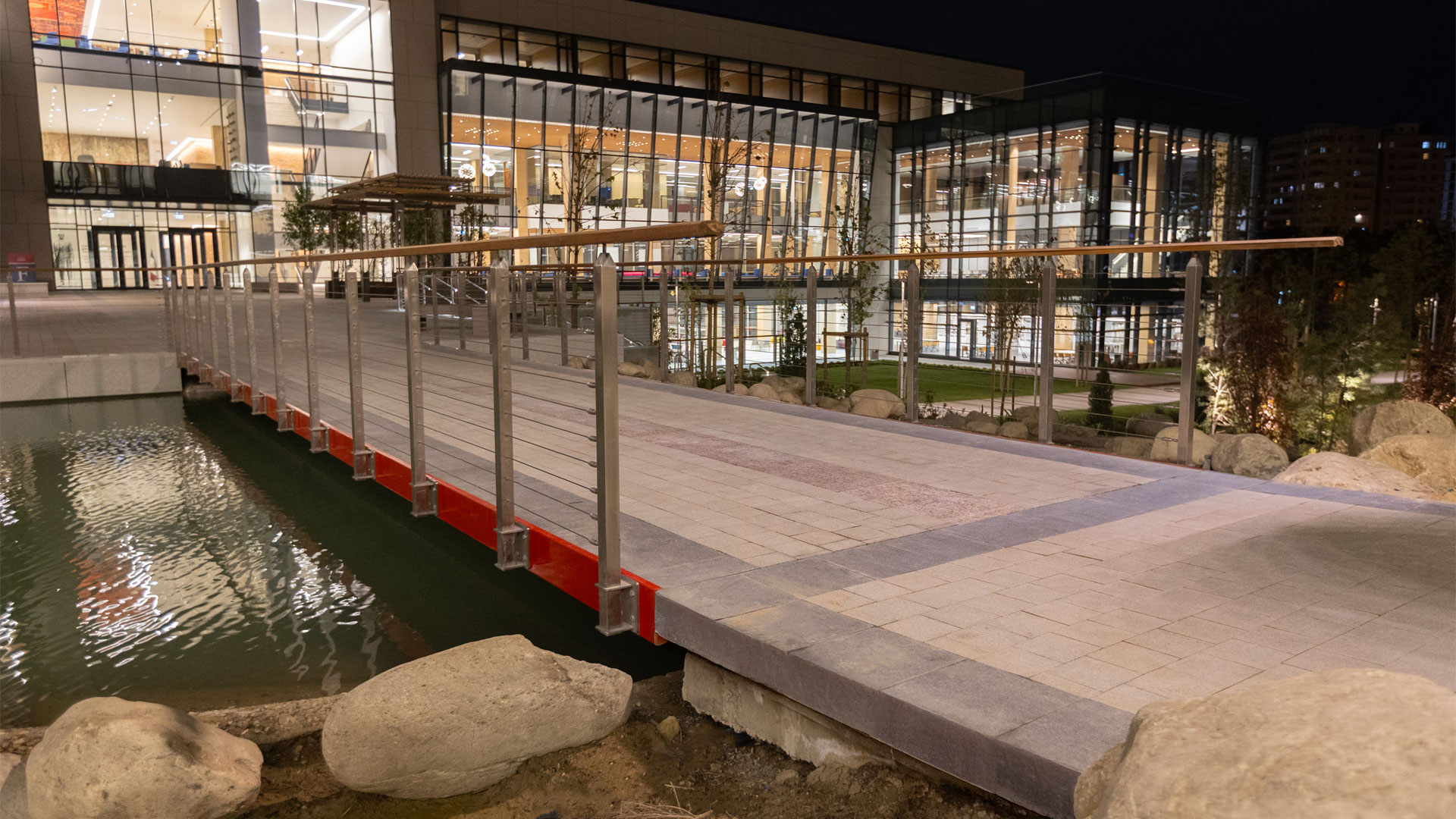 Layihə, sahəyə uyğun keçid problemini uzunömürlü və baxımı asan olan memarlıq həlli ilə əvəz etdi.