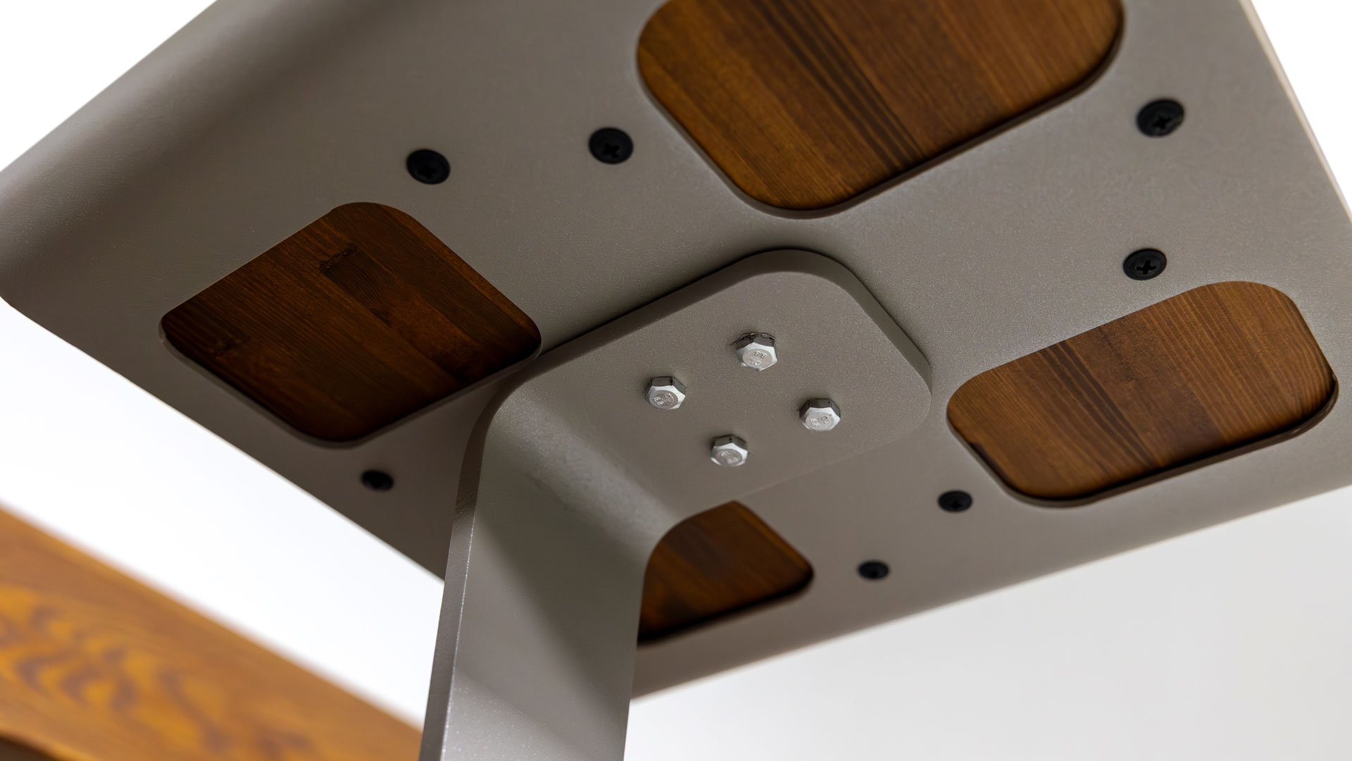 Its structure features hot-dip galvanized and powder-coated metal, providing exceptional resistance to corrosion and wear. The seat and supportive backrest are made from glued, water-resistant wood coated with EN 71-3-certified paint—safe, non-toxic, and highly durable. This ensures a long-lasting finish that resists peeling, fading, and damage from the elements.