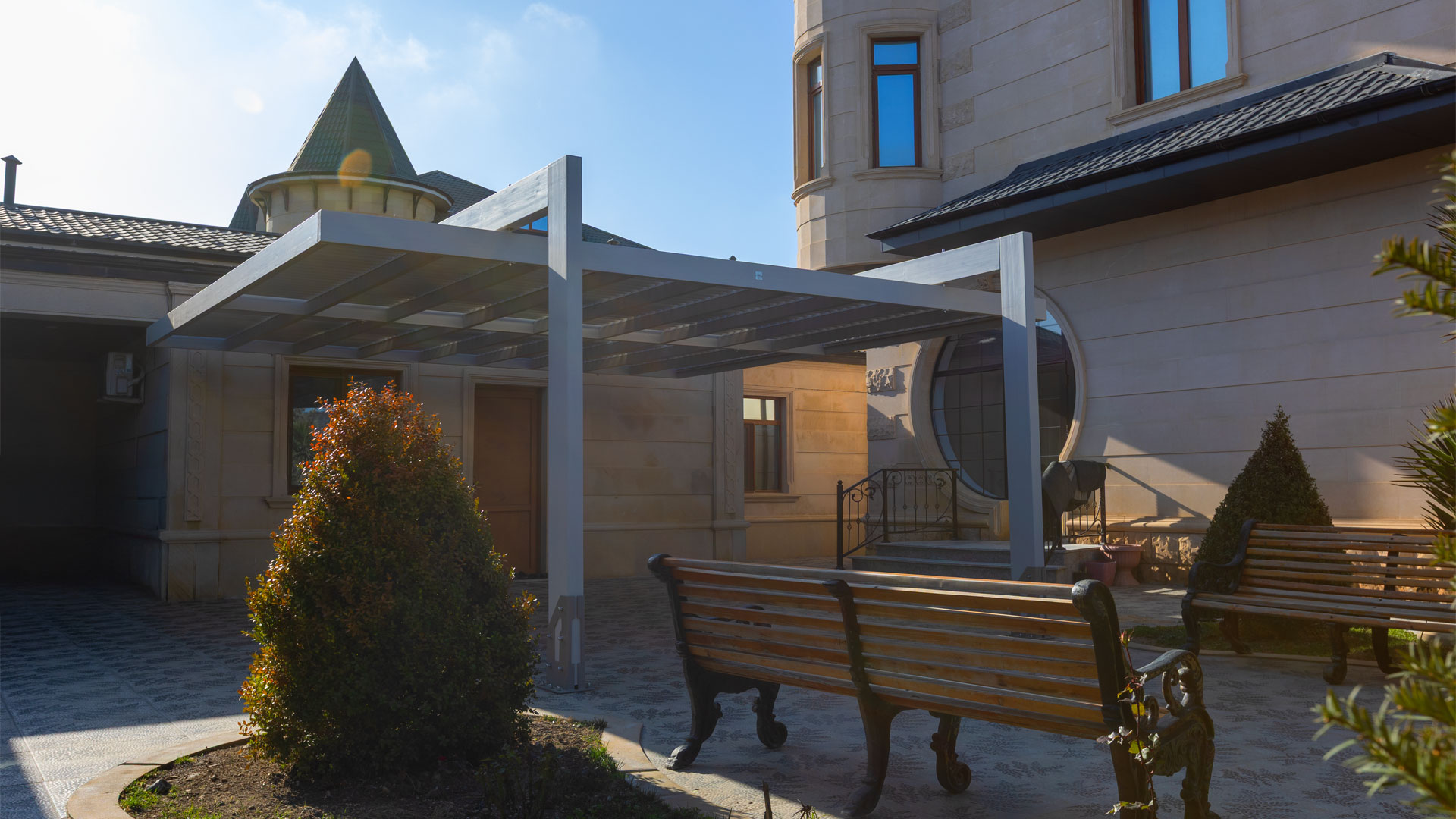 Spirit provides a durable and technically resolved pergola system for long-term outdoor use.