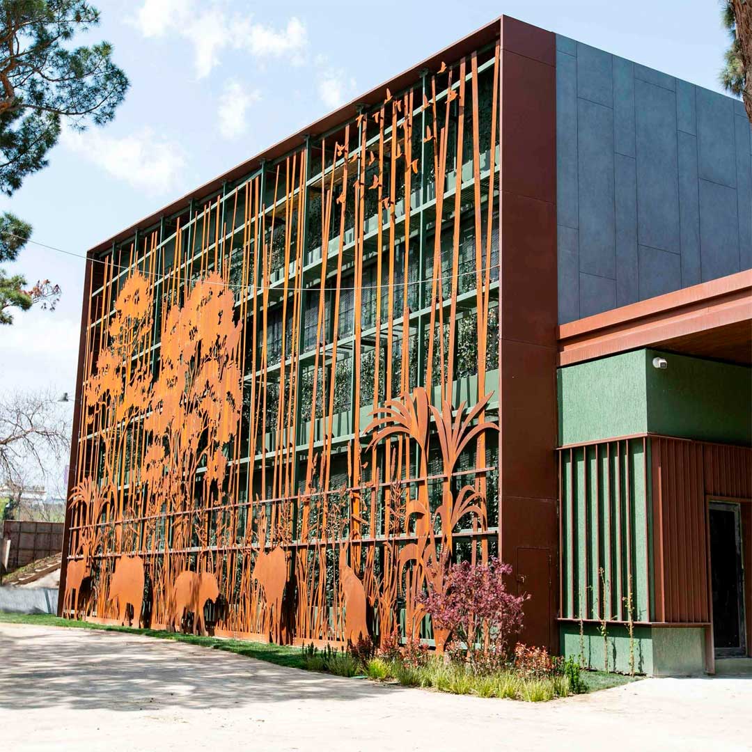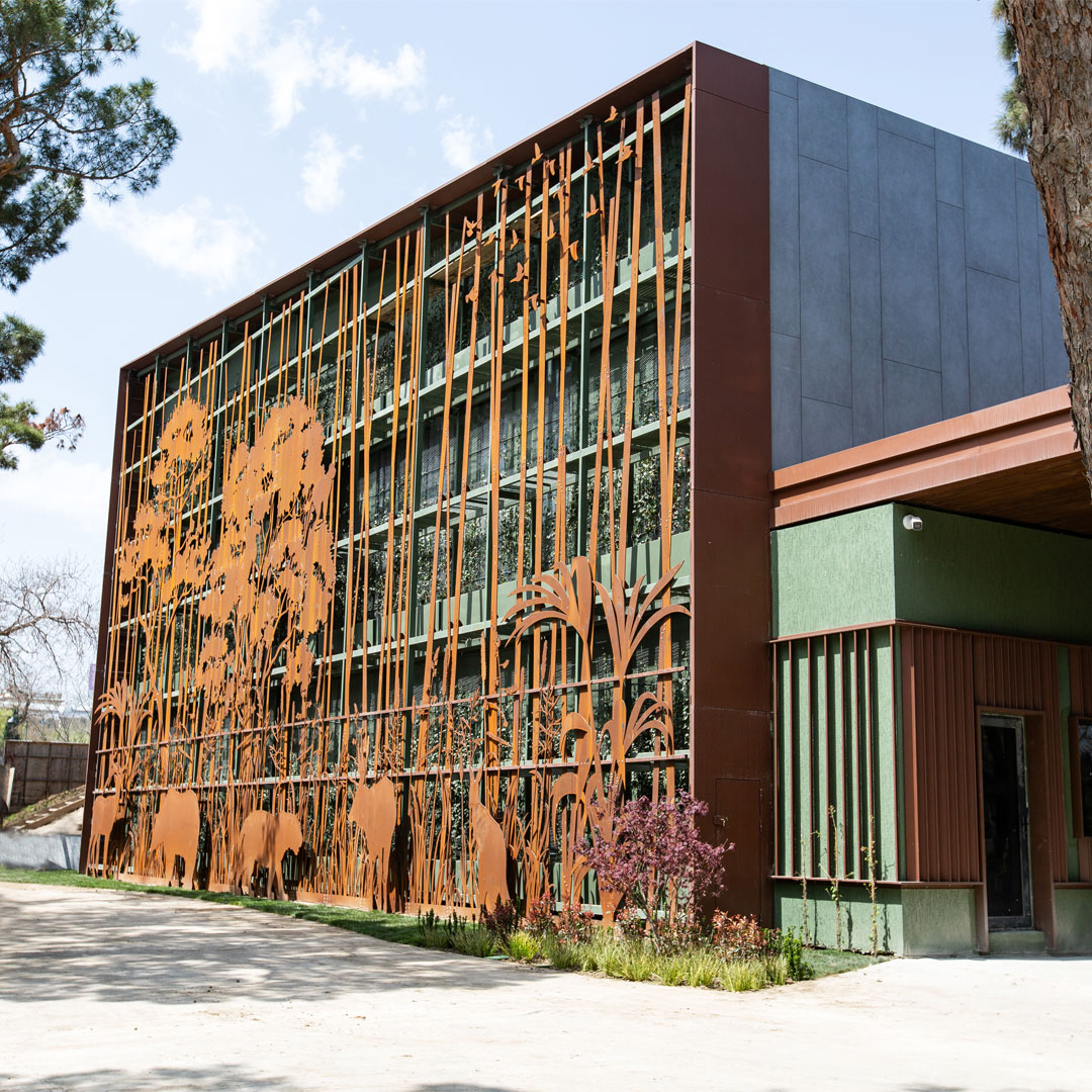 This enormous artwork made from Corten stands tall at the entrance of the Baku zoological park. It was made from full sheets of Corten that were cut by using high-precision lasers, to make big and small shapes for this complicated, layered artwork. Depicting both flora and fauna, this testament to wildlife fits in perfectly with its surroundings.