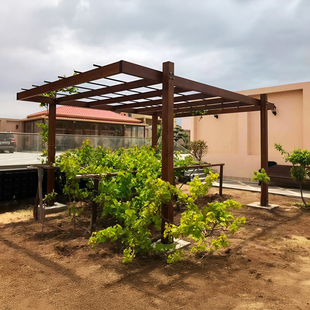 "Discover the epitome of outdoor elegance with our customizable pergola design by IDEA LLC. Meticulously crafted using impregnated and glue-laminated wood, each component is coated with water-based paint certified by the EN 71-3 Safety for Toys standard. This innovative construction ensures unparalleled water repellency and UV resistance, safeguarding your outdoor sanctuary from the elements while maintaining its pristine appearance. Embrace durability and safety without compromising on style, as our pergola seamlessly blends into any outdoor setting, promising years of enjoyment and relaxation."