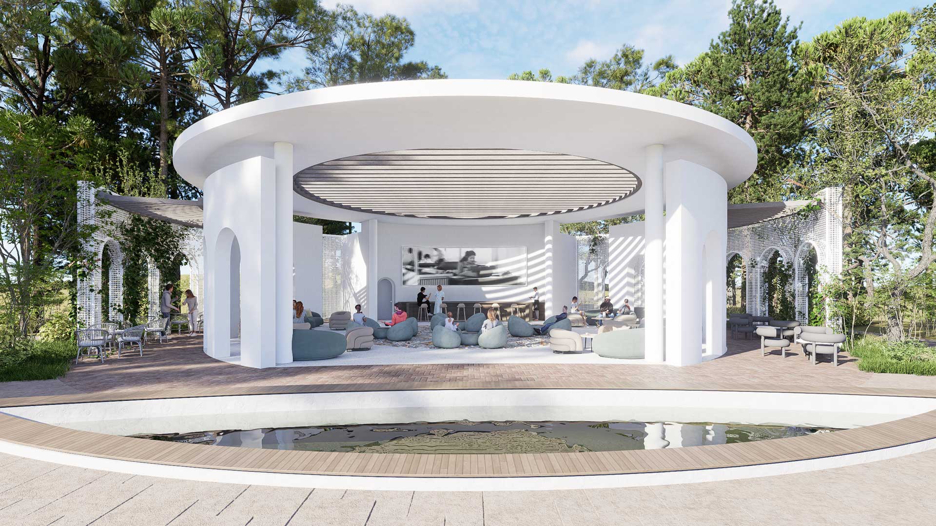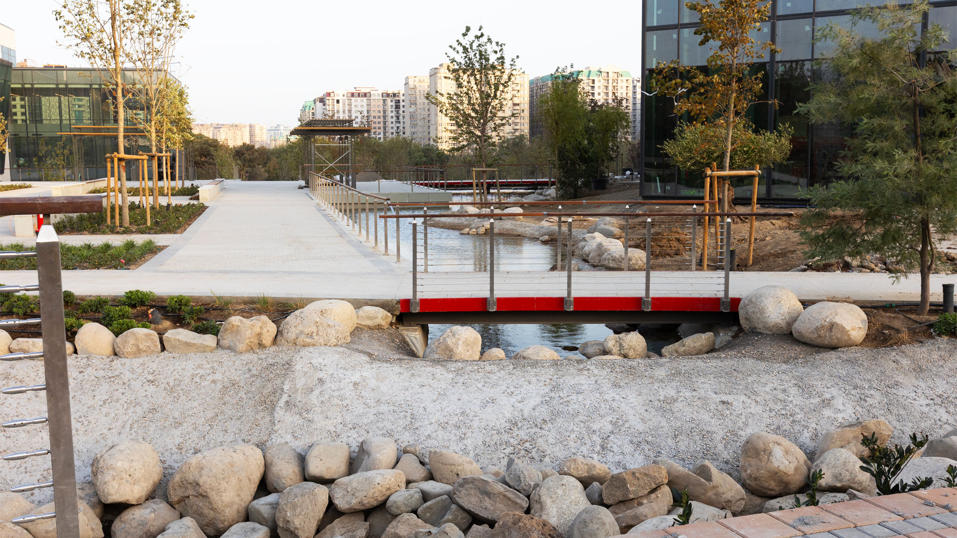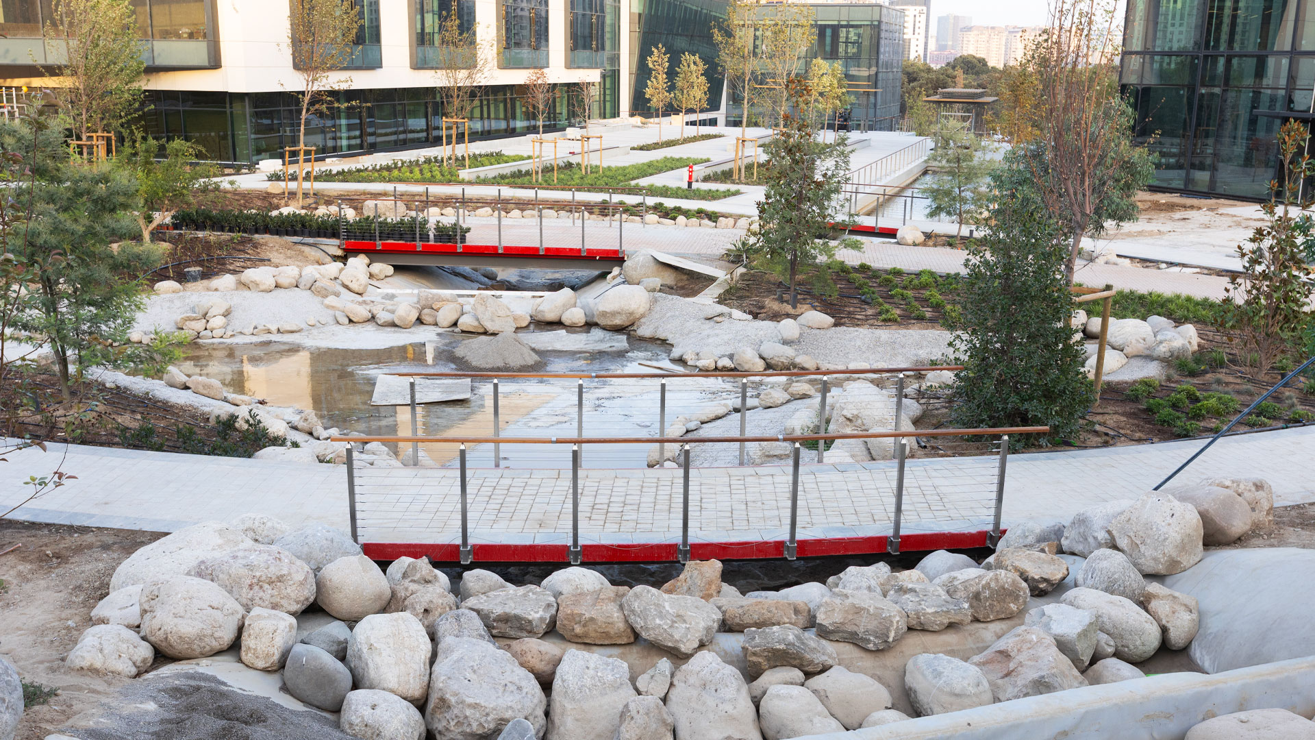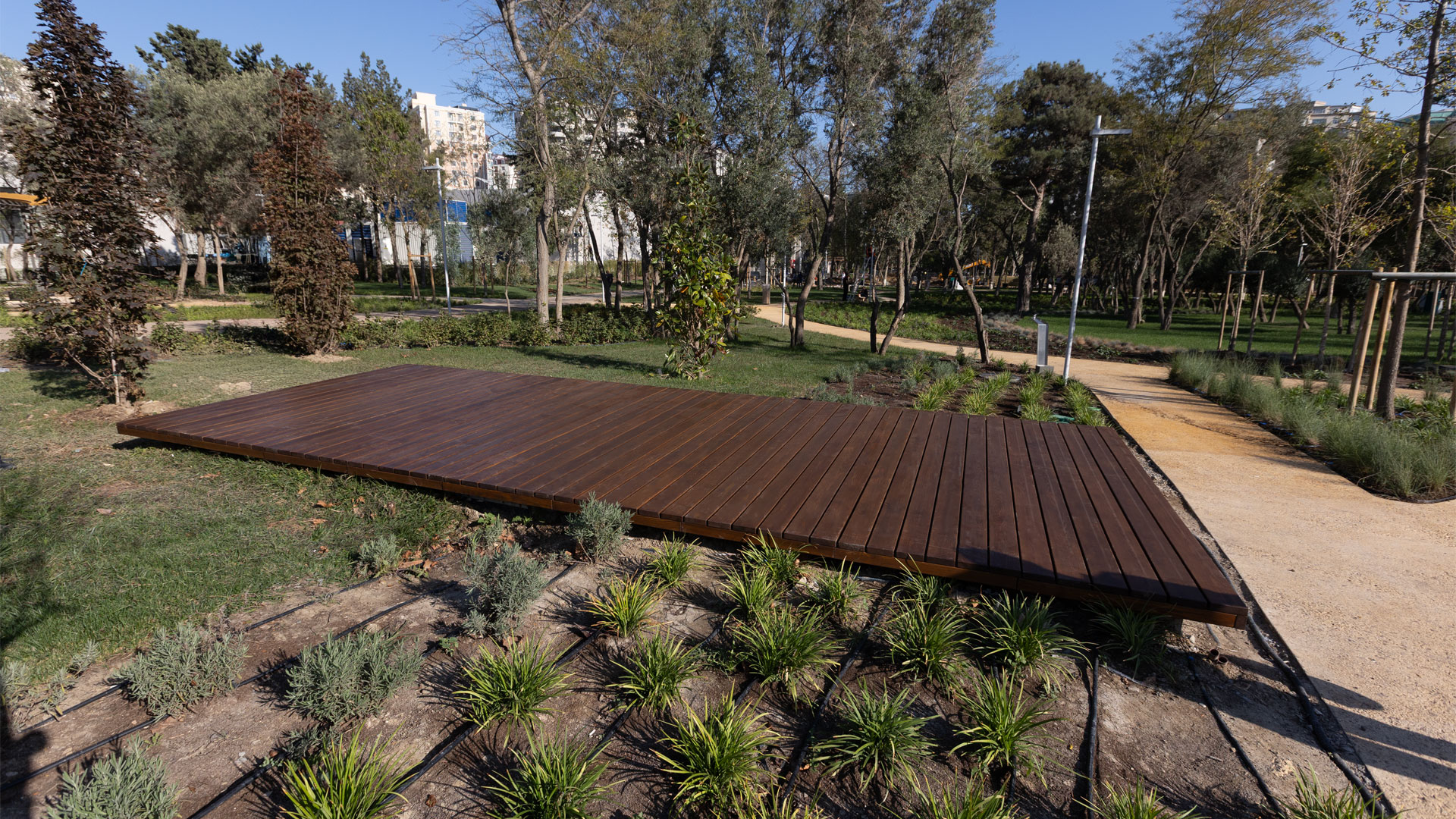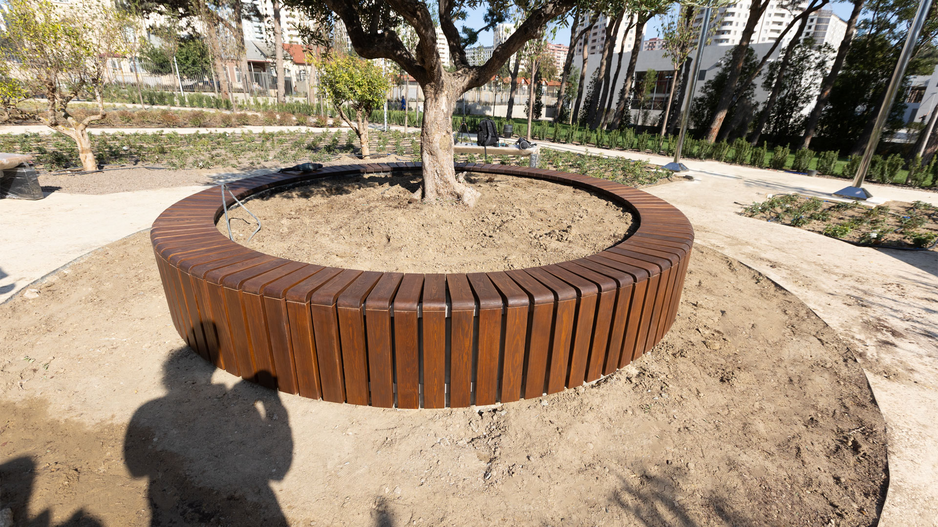 ADA University’s campus expansion for the new Faculty of Architecture & Design—developed in collaboration with Politecnico di Milano (Italy)—required a coherent system of large and small outdoor elements that support circulation, study, and public life. IDEA engineered and delivered the “Poem House” structure, a custom “Trellis” pergola, and twelve “La-Defense Slim” pergolas, along with pedestrian bridges and flagpoles. The scope also included custom wooden seating families integrated with concrete: linear and circular benches (including a tree-surround), large wooden platforms, and site-specific pieces that tie together faculty buildings and open spaces.