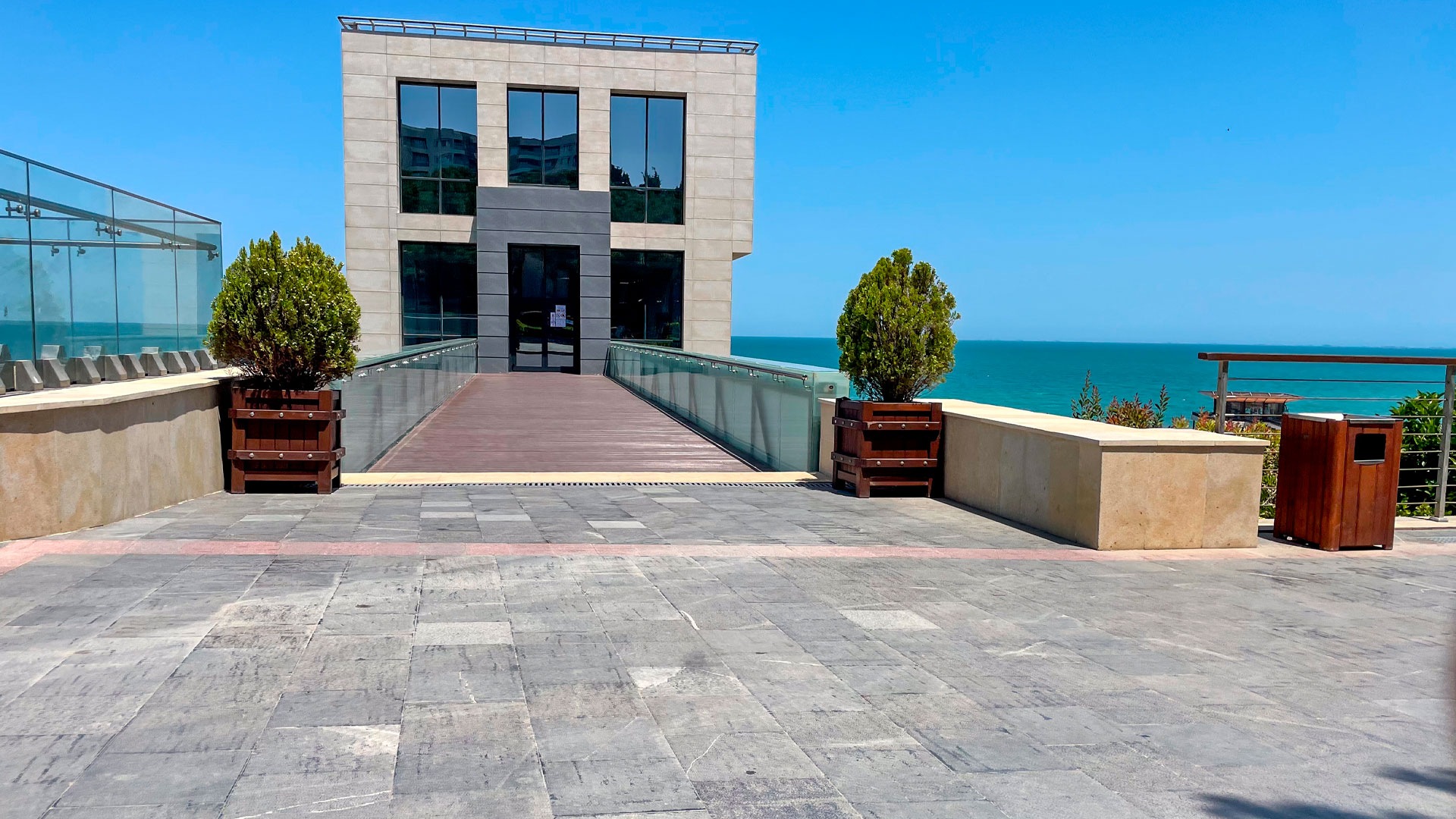 Sanatorium of the State Security System: This is where high professionalism and world standards create an alluring atmosphere. With their elegant appearance, functionality & comfort, ''La Defense'' pergolas will beautify your outdoor space. ''Toni'' and ''Sunny'' chaise lounges, furthermore ''Millennium'' litter bins are part of this project too. The wood we used is impregnated, D4 glue-laminated, and coated by water-based paint, certified by the "EN 71- 3 Safety for Toys" standard, making the pergola water-repellent and UV resistant. Additionally, all metal is hot-dip galvanized and powder coated.