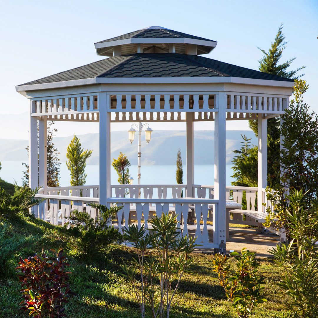 Toscana ha sido diseñado para ayudar a crear un pequeño refugio de tranquilidad en su jardín.Su techo de forma octogonal proporciona sombra y refugio, dependiendo de las condiciones climáticas.La pérgola está hecha de madera laminada por pegamento e impregnada, que está aprobada por el estándar de "seguridad EN 71-3 para juguetes" y hace que el agua de la pérgola sea resistente a los UV.Además, un acabado de madera translúcida implementa la protección duradera de una mancha sin oscurecer la belleza natural de la madera.Nuestra empresa utiliza juntas de acero hechas a medida, lo que facilita la instalación y el transporte del producto.