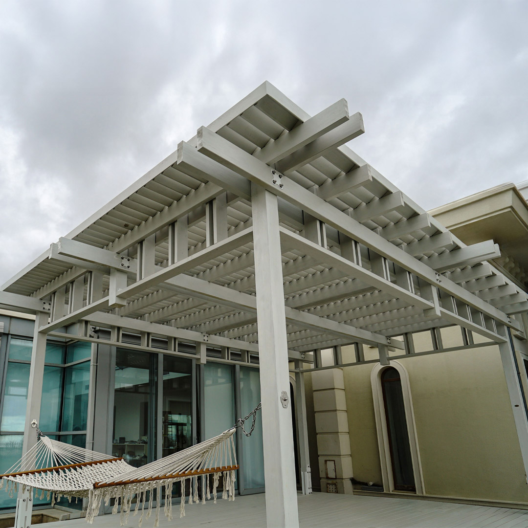 La pérgola "Septum Hammak" creará un área sombreada agradable donde usted, sus amigos y su familia pueden descansar lejos del intenso resplandor del sol y crear un ambiente completamente agradable.La hamaca especial de la pérgola lo convierte en una elección perfecta para la relajación.Puede agregar un poco de toque personal al diseño utilizando macetas y flores decorativas.El uso de madera laminada por pegamento e impregnada, que es aprobada por "EN 71-3 Safety for Toys", hace que el repelente de agua de la pérgola sea resistente a los rayos UV.Además, un acabado de madera translúcida implementa la protección de manchas duraderas sin oscurecer la belleza natural de la madera.Nuestra empresa utiliza juntas de acero hechas a medida, lo que facilita la instalación y el transporte del producto.