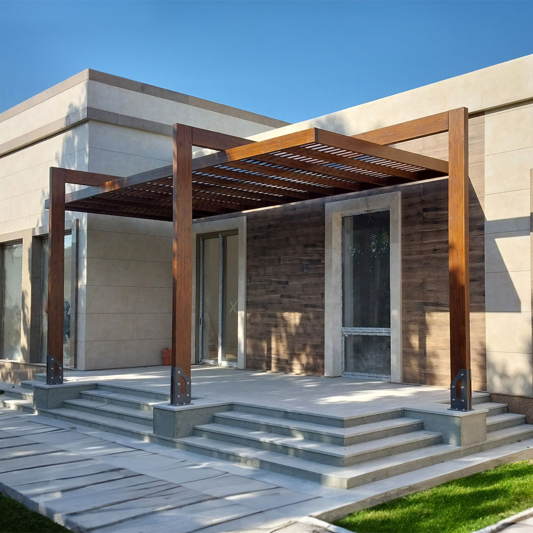 "Collezione Grandezza" será una excelente opción para sus diseños exteriores con su apariencia simple y elegante. Todas las conexiones de la pérgola están solucionadas, diseñadas y fabricadas por IDEA. La madera impregnada protege la pérgola de la descomposición, los insectos y las termitas en condiciones exteriores. La pérgola está pintada con una pintura a base de agua con certificación "EN 71-3 Seguridad para Juguetes". La pintura tiene propiedades repelentes al agua y protege la madera de los rayos ultravioleta. Esto previene la decoloración, el secado y el agrietamiento de la madera. Para evitar problemas de oxidación, todas las uniones metálicas están galvanizadas. El uso de estructuras de unión con pernos hace que la pérgola sea fácil de transportar e instalar, al mismo tiempo que hace la construcción más duradera. Las opciones de color disponibles para la pérgola son: Thermowood, Antracita, Blanco, Creole.