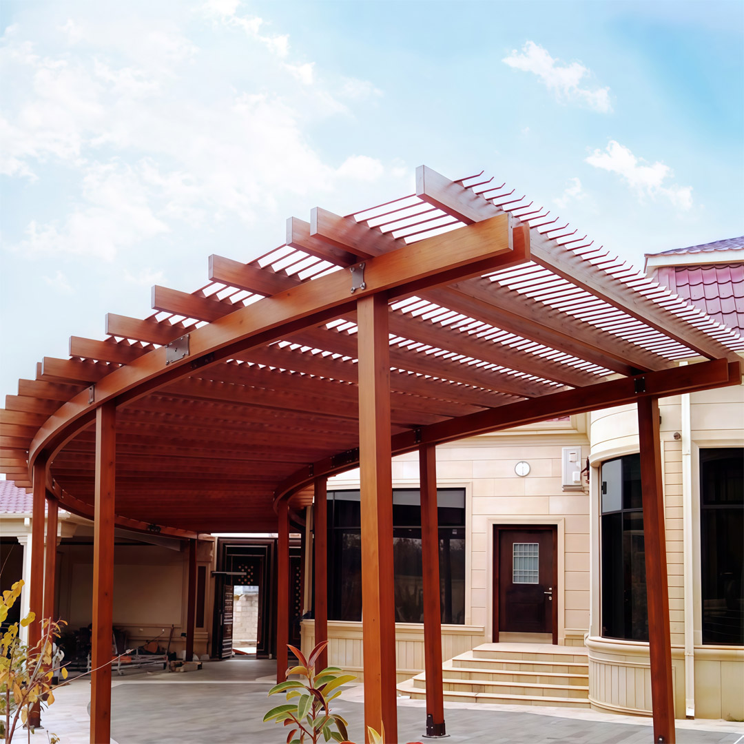 La construcción de "Julienne Bonaparte" está diseñada y construida como una línea curva, para la disposición al aire libre por idea.Proporciona sombra perfecta y área suficiente para estacionar en los días soleados.La estructura de la pérgola es totalmente personalizable, lo que la hace aplicable en muchos espacios diferentes. El uso de madera impregnada y d4 y laminada de pegamento recubierta por pintura a base de agua, que está certificada por "EN 71- 3 Safety for Toys", hace que el repelente de agua de la pérgola sea resistente a los rayos UV y duraderos contra grietas y ampollas.Además de eso, un acabado de madera translúcida implementa una protección de manchas duradera, sin oscurecer la belleza natural de la madera.Nuestra empresa utiliza juntas de acero hechas a medida, lo que facilita la instalación y el transporte de la pérgola.