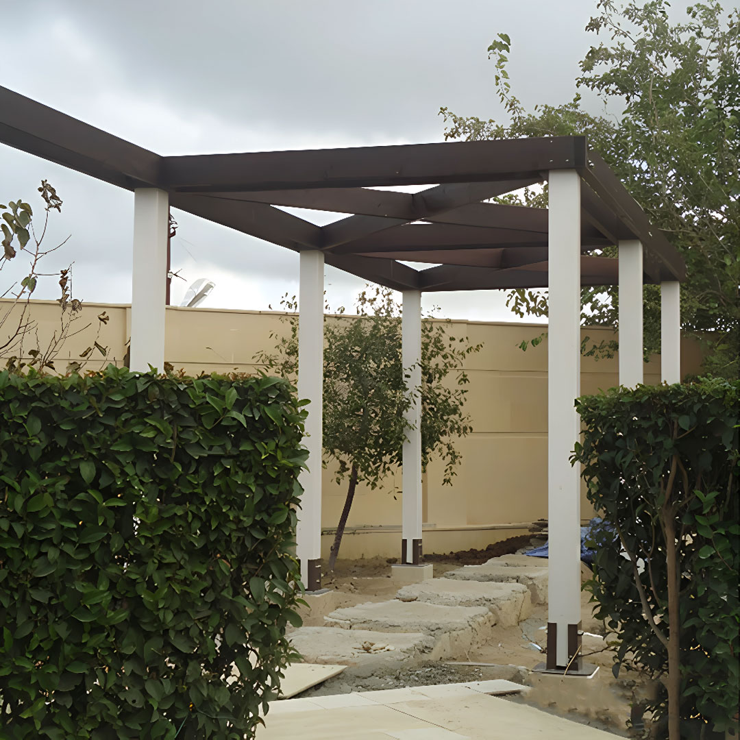 La forma simple e impecable de la "Julienne Idee" lo convierte en una elección perfecta para los exteriores.La estructura de la pérgola es totalmente personalizable, lo que la hace aplicable en muchos espacios diferentes. El uso de madera impregnada y laminada por pegamento recubierta por pintura a base de agua, que está certificada por "EN 71- 3 Safety for Toys", hace que el agua de la pérgola sea resistente a las UV.Además de eso, un acabado de madera translúcida implementa una protección de manchas duradera, sin oscurecer la belleza natural de la madera.Nuestra empresa utiliza juntas de acero hechas a medida, lo que facilita la instalación y el transporte de la pérgola.