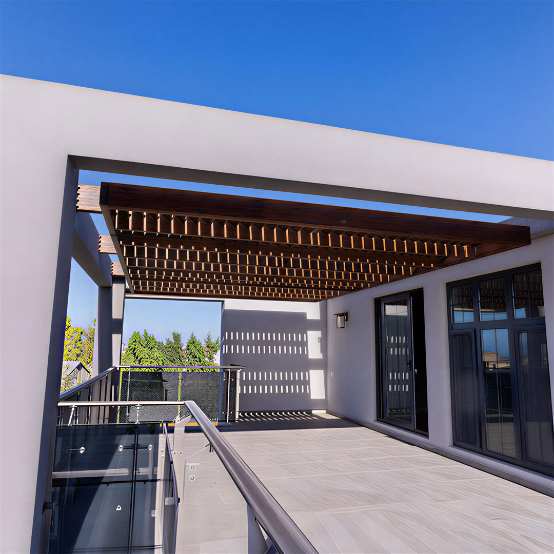 Para evitar problemas de oxidación, todas las uniones metálicas están galvanizadas. El uso de estructuras de unión con pernos hace que la pérgola sea fácil de transportar e instalar, al mismo tiempo que hace la construcción más duradera.
