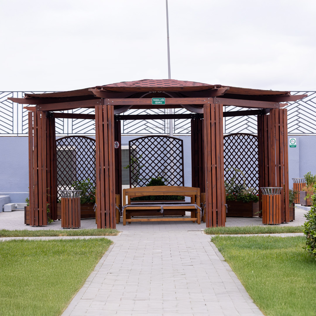 IDEA представляет вам “Colisium.” Элегантный дизайн сооружения послужит украшением для вашего сада и создаст идеальную зону для отдыха на открытом воздухе.Использование обработанной и клееной древесины, покрытой краской на водной основе, сертифицированной "EN 71-3 Safety For Toys," делает беседку водоотталкивающей, устойчивой к ультрафиолетовому излучению и продлевает срок службы изделия. Кроме того, полупрозрачная отделка под дерево обеспечивает надежную защиту от пятен, не скрывая естественной красоты древесины.Использование горячеоцинкованного металла с порошковым покрытием на всех этапах производства увеличивает устойчивость продукта и способствует сохранению его характеристик в суровых погодных условиях. Наша компания использует изготовленные на заказ стальные соединения, которые упрощают установку и транспортировку беседки.