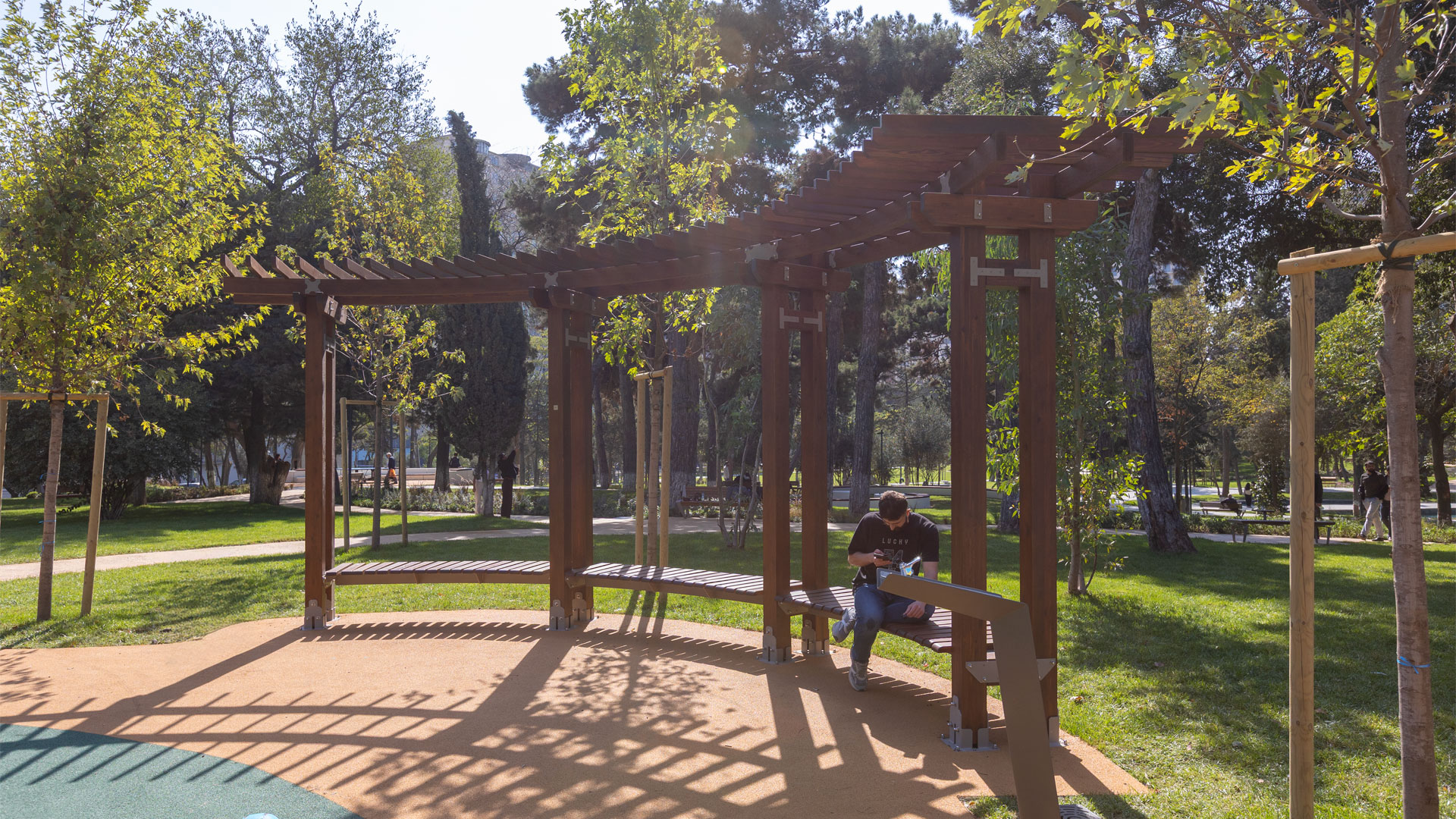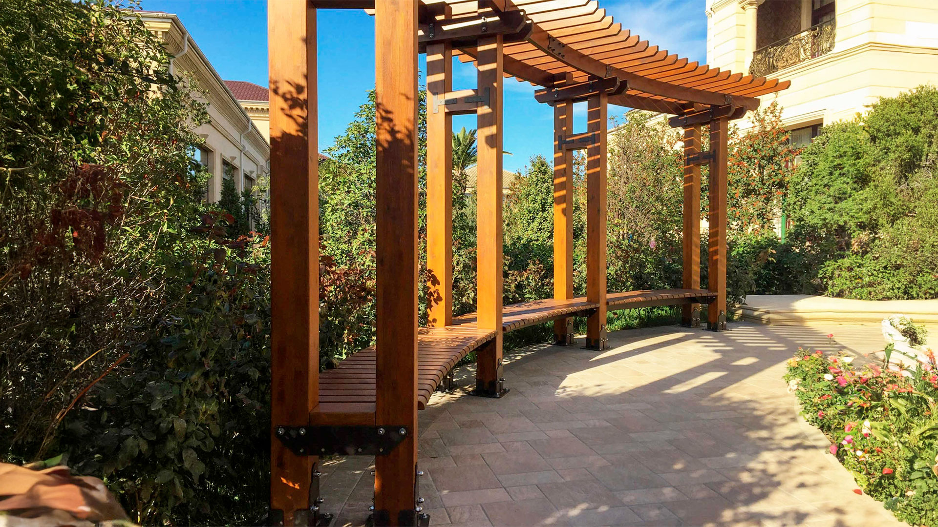 Semita Pergola, часть коллекции Julienne от IDEA, разработана как полностью адаптируемая конструкция, подходящая для самых разных ландшафтных и архитектурных задач. Её ключевая особенность — встроенная деревянная скамья, которая превращает перголу в функциональное укрытие и комфортную зону отдыха.