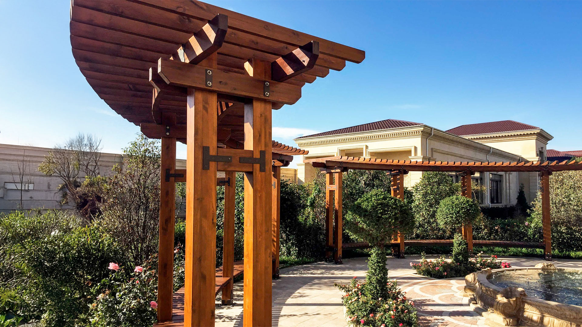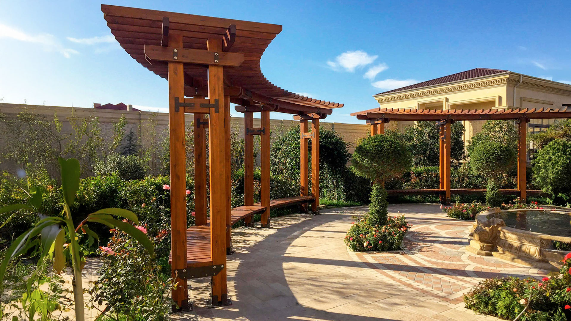 Пергола Terra сочетает долговечность, гибкость настройки и функциональную эстетику — создавая продуманный архитектурный элемент для современных открытых пространств.