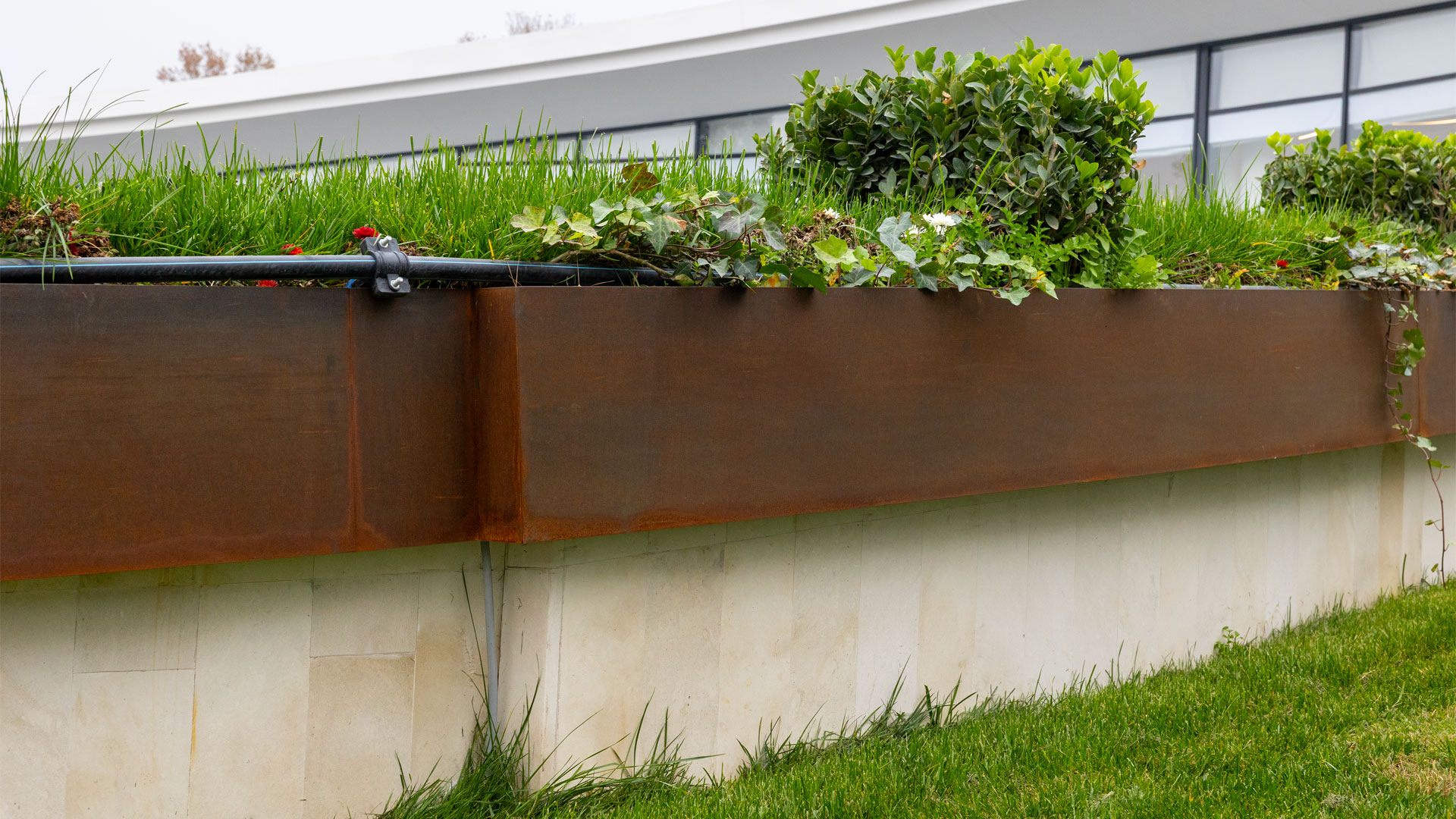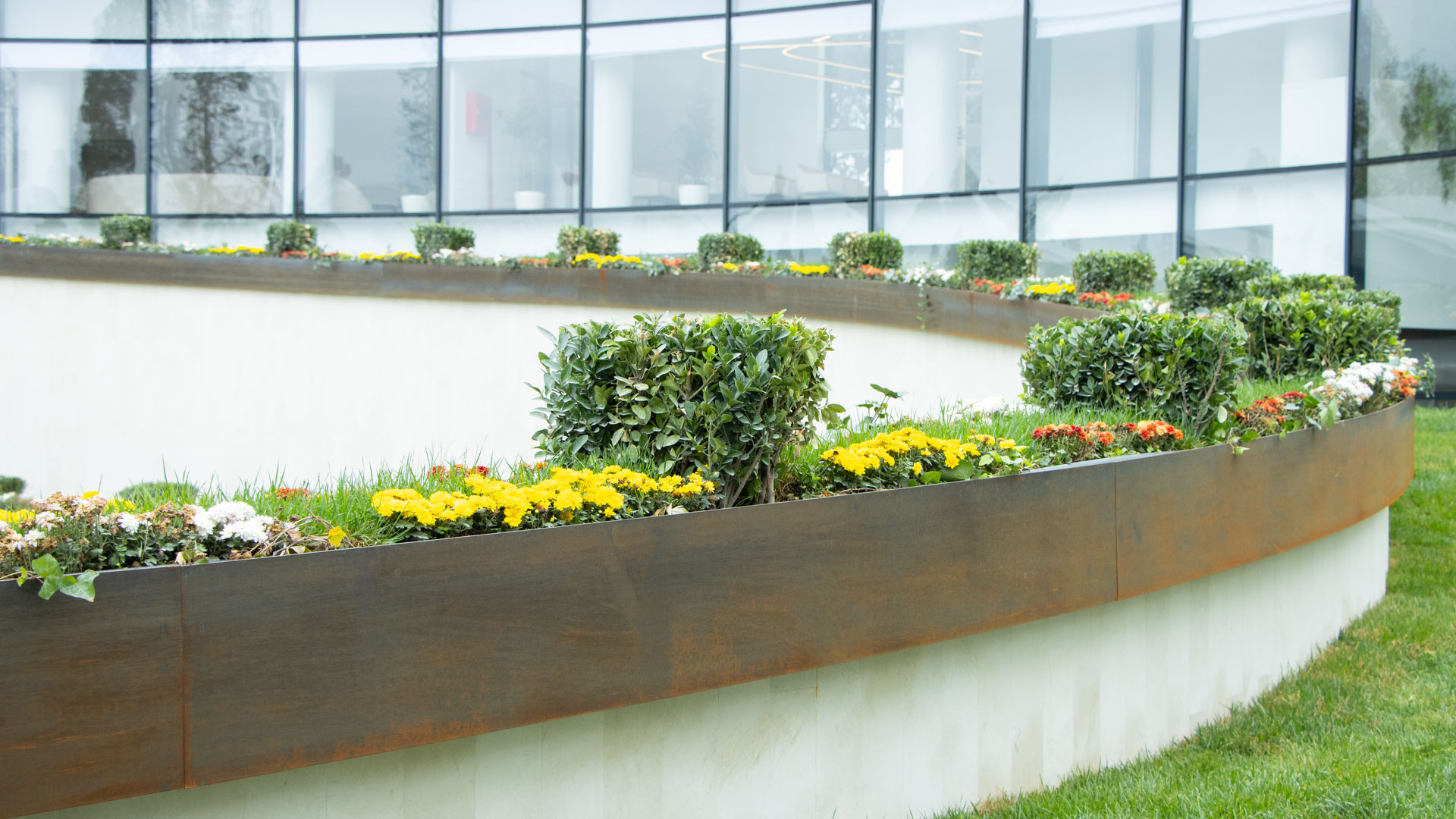 спиральный кашпо из кортеновской стали с специальной металлической рамой и встроенным дренажом Этот 252-метровый спиральный кашпо был разработан для точной установки на заранее отлитое бетонное основание, что представляло серьёзную инженерную задачу…